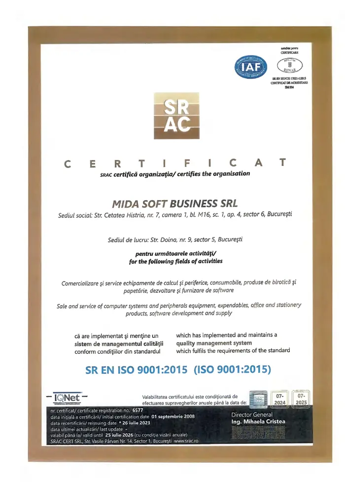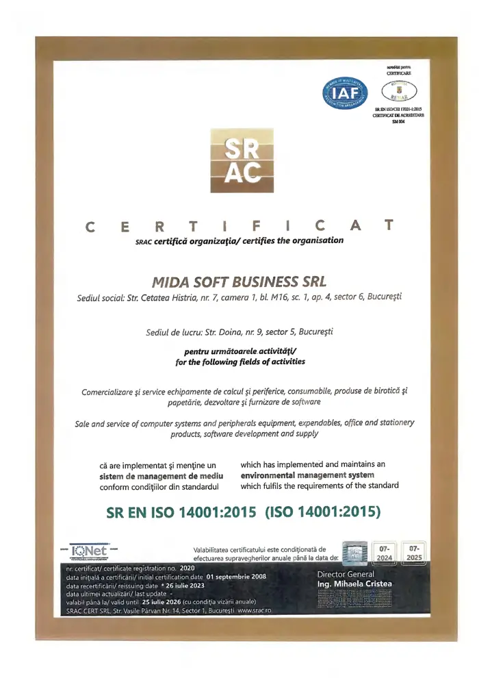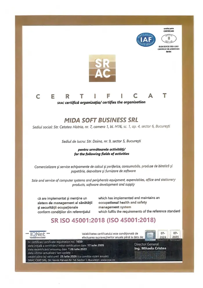 Un alt aspect esențial în activitatea Mida Soft Business este asigurarea unor servicii de consultanță și asistență tehnică de înaltă calitate, atât înainte, cât și după achiziționarea produselor. Compania se mândrește cu o echipă de ingineri calificați, specializați în domeniul IT, susținută de specialiști dedicați pentru fiecare linie de business. Această abordare permite Mida Soft Business să ofere soluții personalizate și să rezolve cu succes provocările tehnice ale clienților săi.